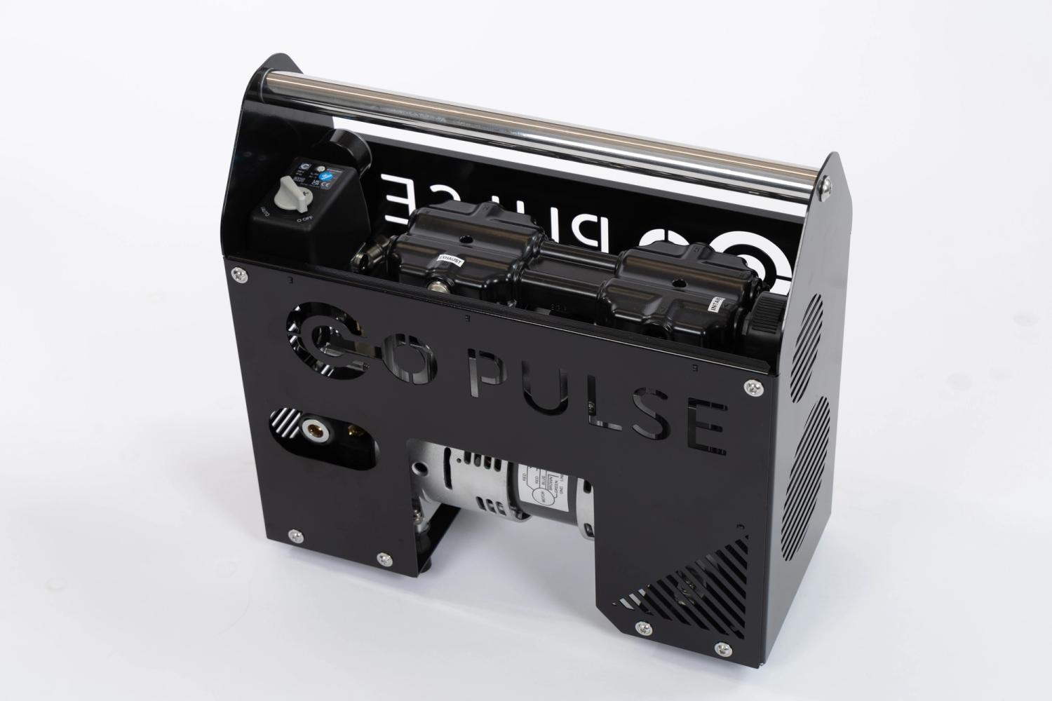 The compressor is an oil-free piston pump compressor used to fill the air receiver’s pressure vessel with air. It is designed to be small and portable whilst still being able to pressurise an air receiver in a short period of time.