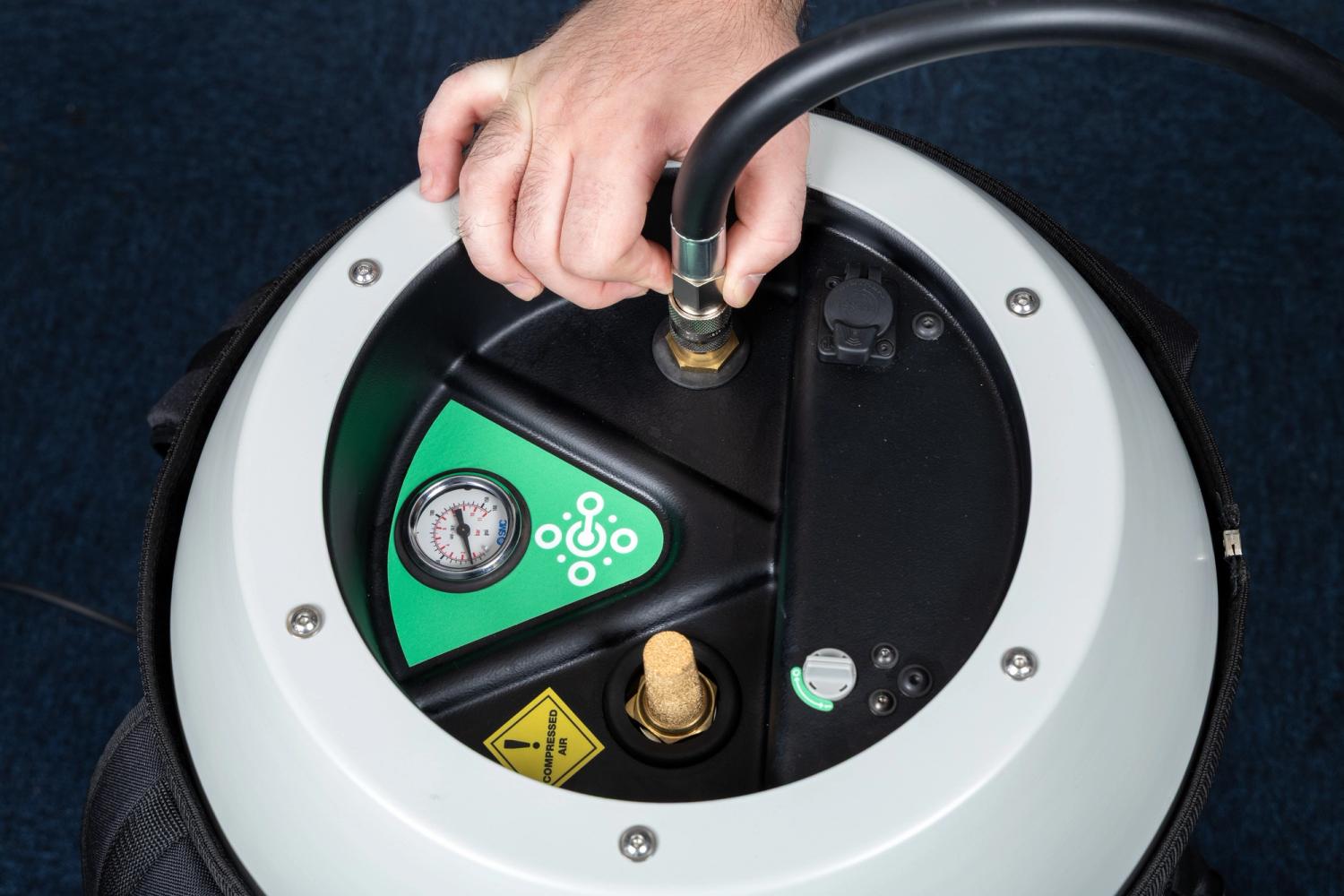 2. The air compressor must also be powered from a main power supply using the standard power cord.
