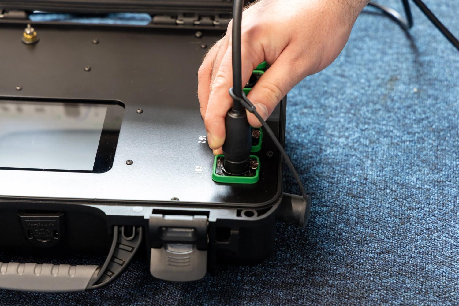 The air receiver is connected to the controller using the interconnect cable. The interconnect cable also provides power to the air receiver using the Power over Ethernet (PoE+) protocol.