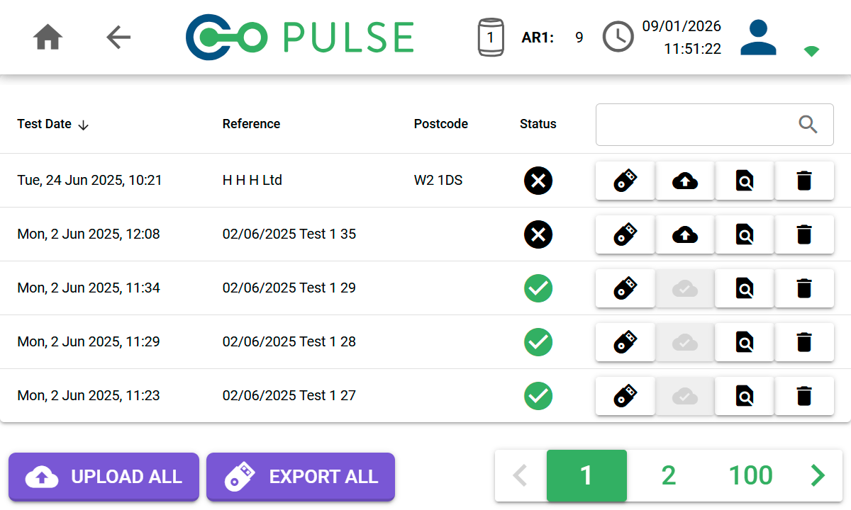 Any tests that have not already been uploaded to the cloud can be uploaded by clicking the Upload all button. The process may take some time depending on the number of tests that have to be uploaded.